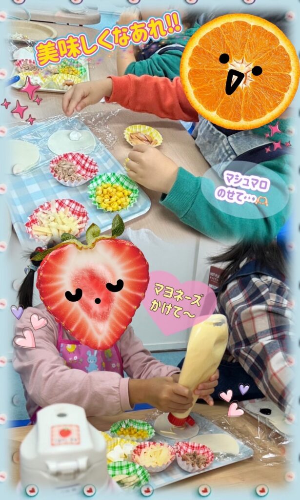 「なに作ろうかな?」「コーンたくさん乗せる!」と賑やかな声が聞こえてきます🎵
