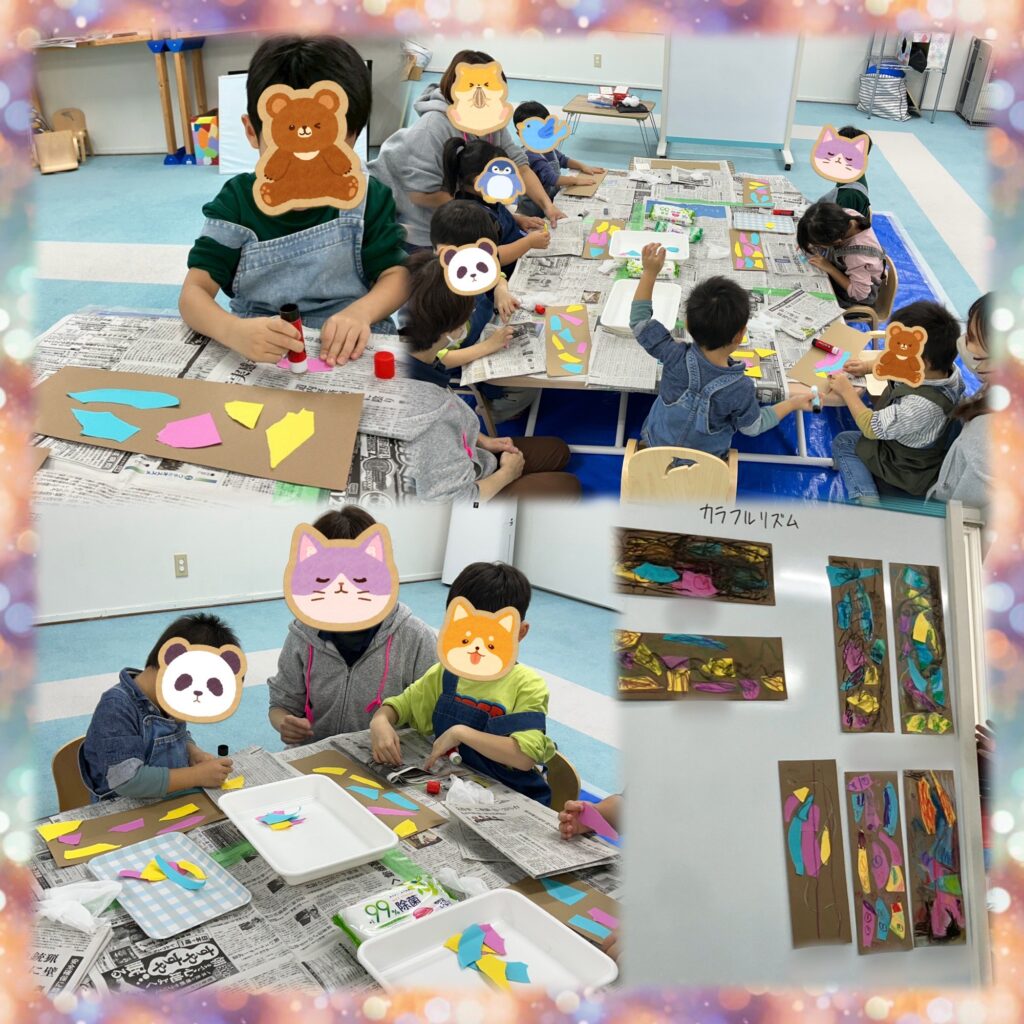好きな色の画用紙を別紙にペタペタ貼り、オイルパステルで上から色付けしていきます🎨✨